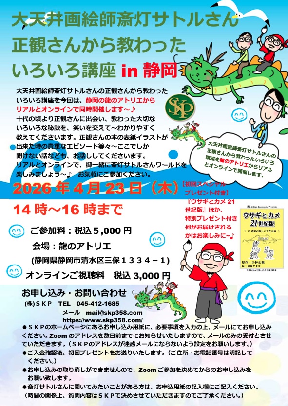 | 2006年4月23日正観さんから教わったいろいろ講座 リアル&オンラインスケジュール in静岡 チラシ スケジュールチラシPDFはこちら〜 |