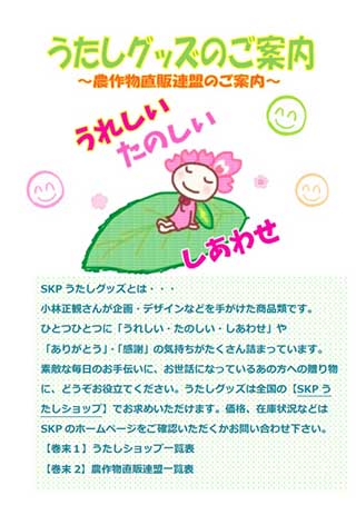 うたしグッズと農作物直販連盟のご案内の小冊子を、うたしショップさんからの