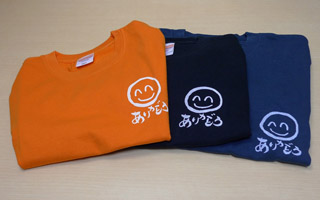 鮮やかな色合いで、重ね着など素敵な コーディネートが楽しめるTシャツです。 背中には、 「喜び屋家業 頼まれ事引受人喜んで頂いてます。」 という言葉がプリントされています。